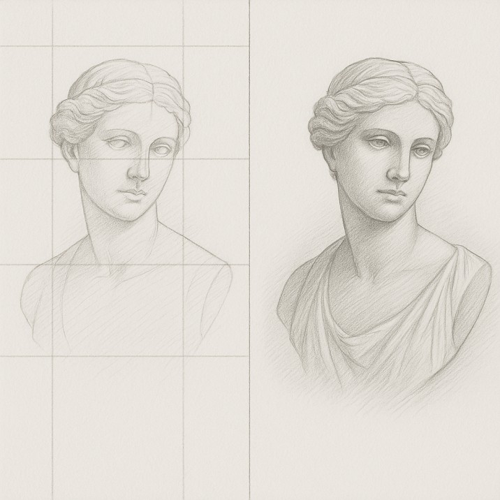 Pro tip: Choose references with good lighting and clear details, especially when you’re first learning. High-contrast images with defined edges are easier to translate through the grid method.